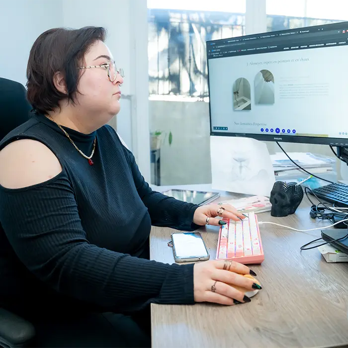 Laure est un « couteau-suisse » dans l’agence, puisqu’elle peut être amenée à travailler aussi bien sur des sites web que des montages vidéos ou de l’animation 2D